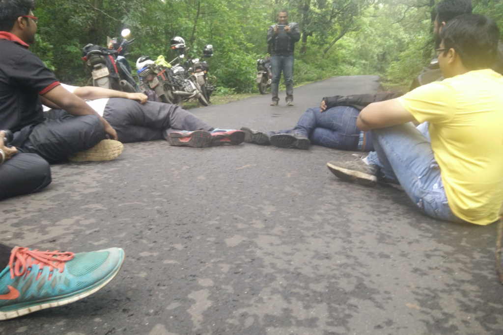 Long drives/rides in monsoons are always a pleasure into interiors of Maharashtra, as the whole sahyadri mountain ranges in lush with greenery. And so are the friends lush with Chutzpah. Which helps me keep awake(pun intended) on the drive. Highways over here are still pretty much in bad condition like in my previous rides on the same tarmac, god knows when will the long unfinished 4 laning of mumbai-goa be completed- hopefully my kids might get to travel (if i have) on buttery smooth roads on this stretch! If not for the trusted sturdiness of my SUV then I’m sure the drive can be 10 times more tiring and slow on this maniac potholed, nonsignaged 2 laned highways! What man dosent make is manyfold times compensated by what nature has in store for us all along. Just before our climb towards coastal town of Alibaug is to begin, we have our pit stop to refresh the whole group of 16.